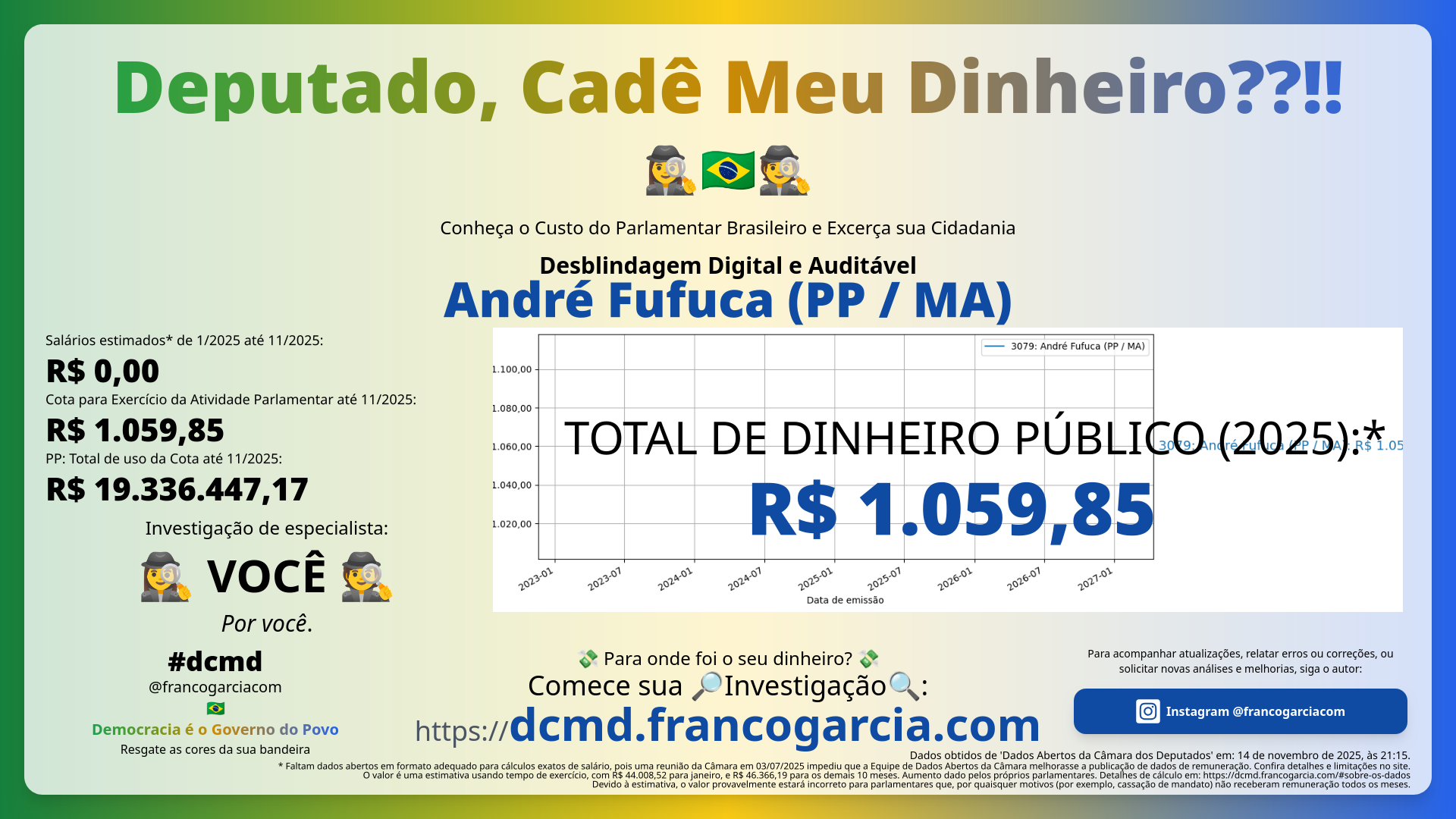 O que você recebeu em troca das despesas com André Fufuca (PP/MA)? Você está satisfeita ou satisfeito com o desempenho do parlamentar? O Brasil melhorou com as propostas, projetos de lei, e votos do parlamentar? Seu dinheiro foi bem investido?