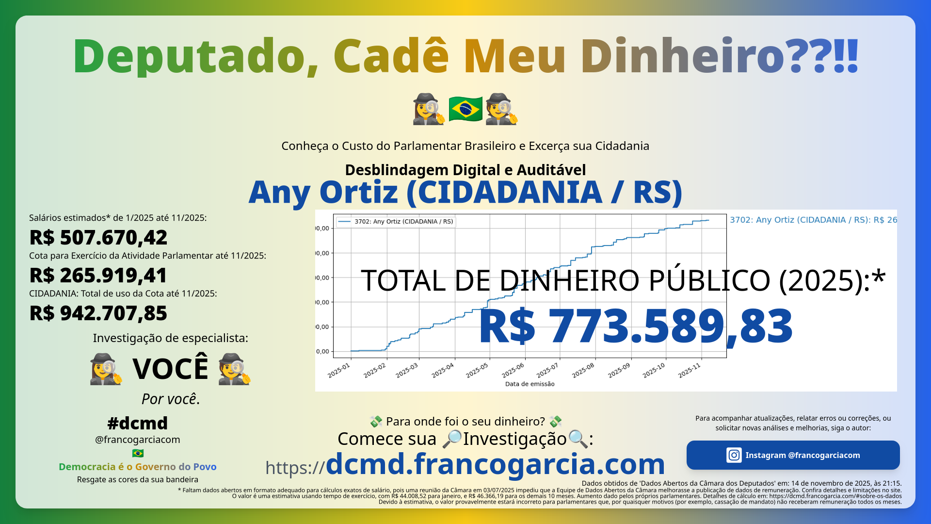 Em 2025, quanto Any Ortiz (CIDADANIA/RS) e o CIDADANIA usaram do seu dinheiro com a Cota para Exercício da Atividade Parlamentar?