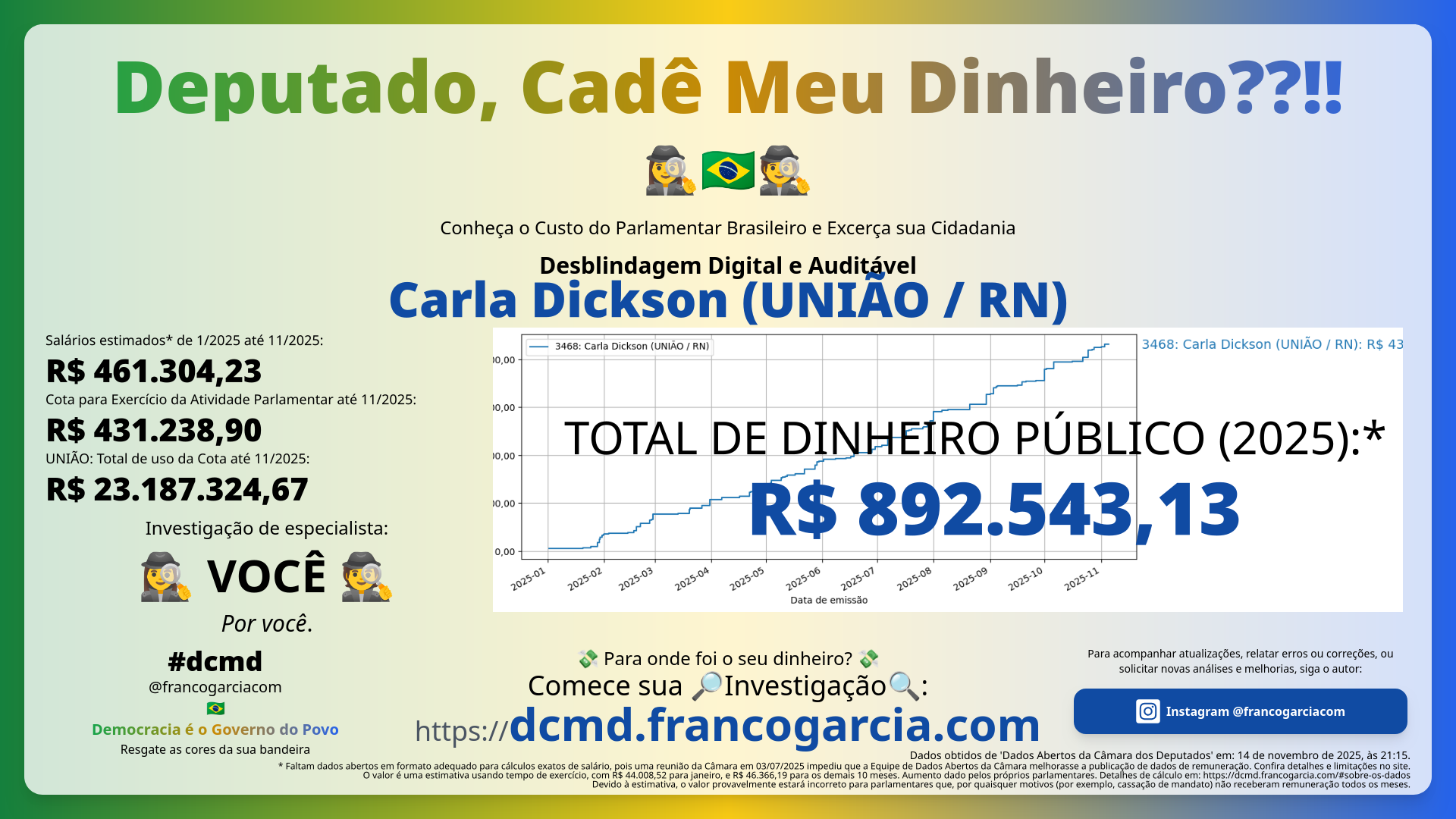 Em 2025, quanto Carla Dickson (UNIÃO/RN) e o UNIÃO usaram do seu dinheiro com a Cota para Exercício da Atividade Parlamentar?