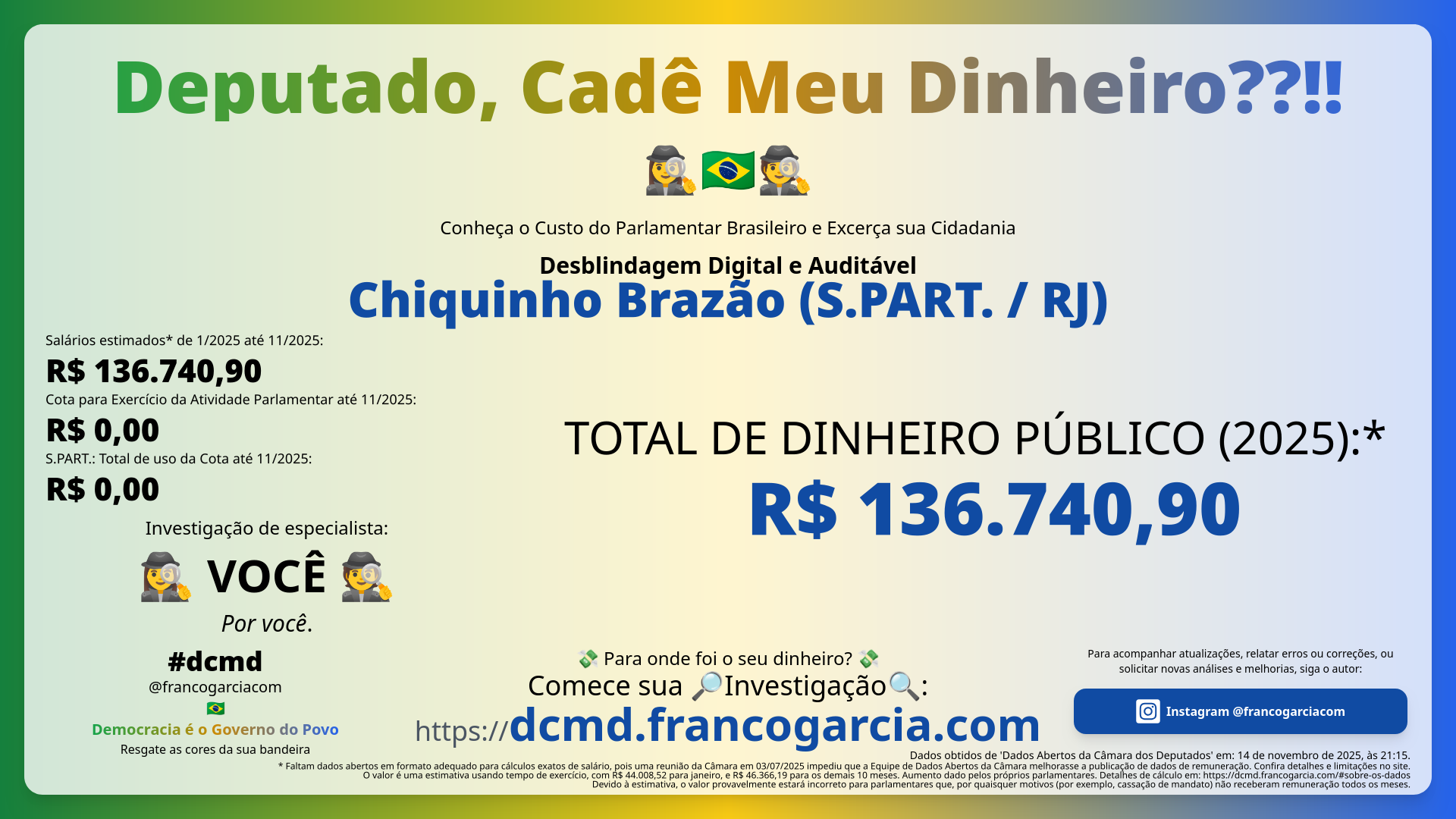 Em 2025, quanto Chiquinho Brazão (S.PART./RJ) e o S.PART. usaram do seu dinheiro com a Cota para Exercício da Atividade Parlamentar?