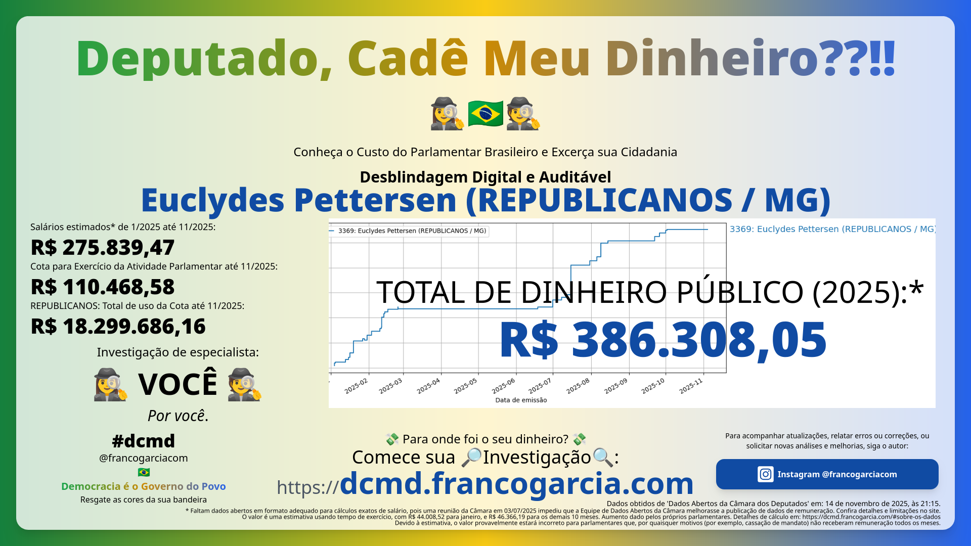 Em 2025, quanto Euclydes Pettersen (REPUBLICANOS/MG) e o REPUBLICANOS usaram do seu dinheiro com a Cota para Exercício da Atividade Parlamentar?