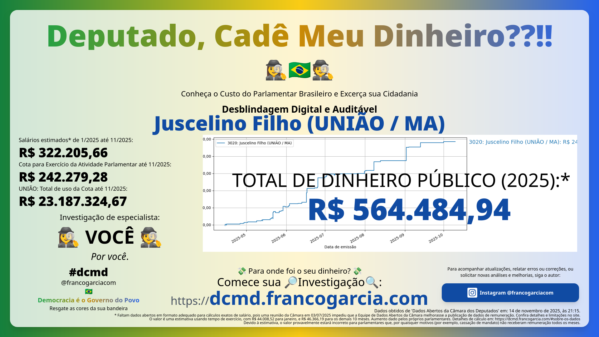 Em 2025, quanto Juscelino Filho (UNIÃO/MA) e o UNIÃO usaram do seu dinheiro com a Cota para Exercício da Atividade Parlamentar?