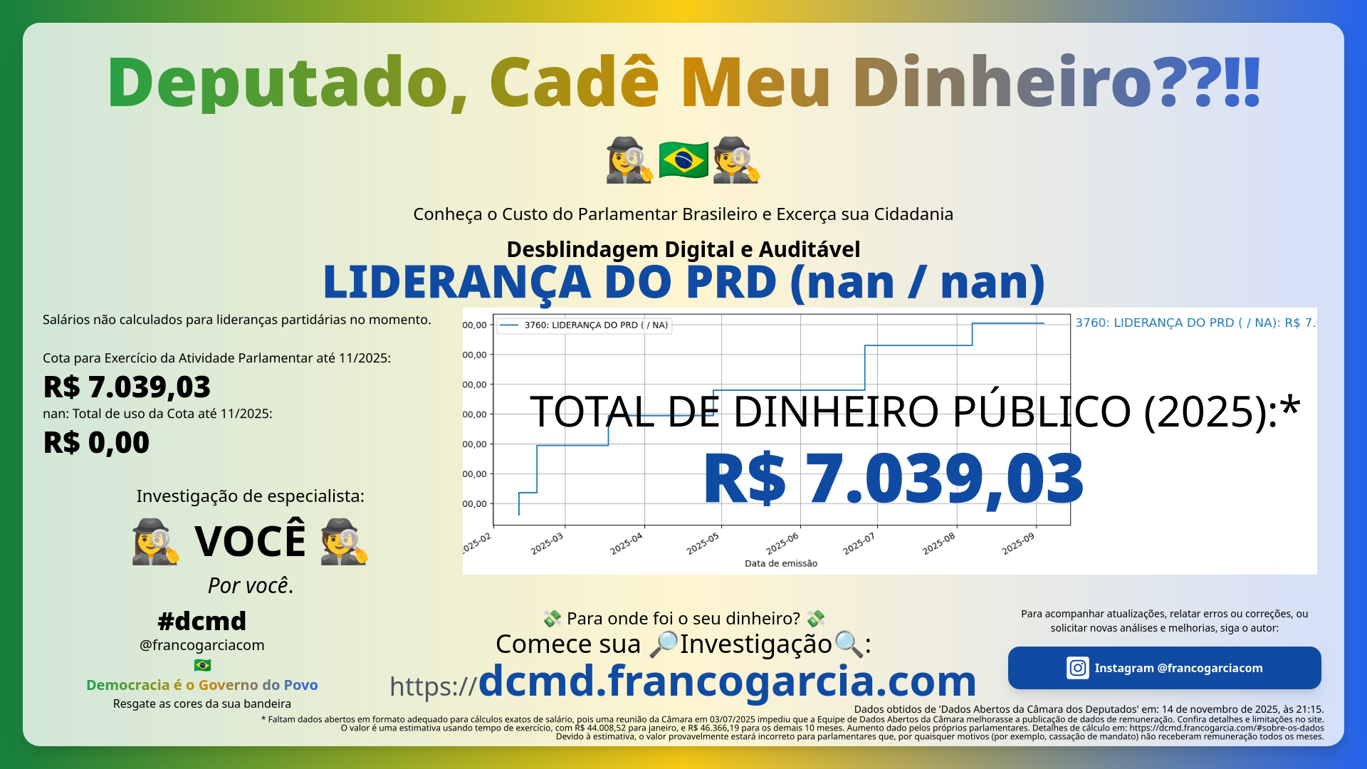 Em 2025, quanto LIDERANÇA DO PRD (nan/nan) e o nan usaram do seu dinheiro com a Cota para Exercício da Atividade Parlamentar?