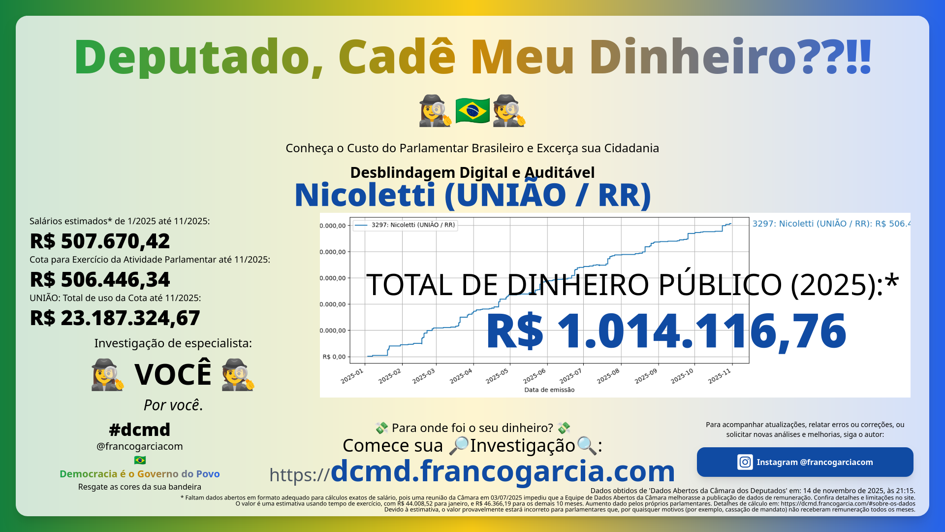 Em 2025, quanto Nicoletti (UNIÃO/RR) e o UNIÃO usaram do seu dinheiro com a Cota para Exercício da Atividade Parlamentar?