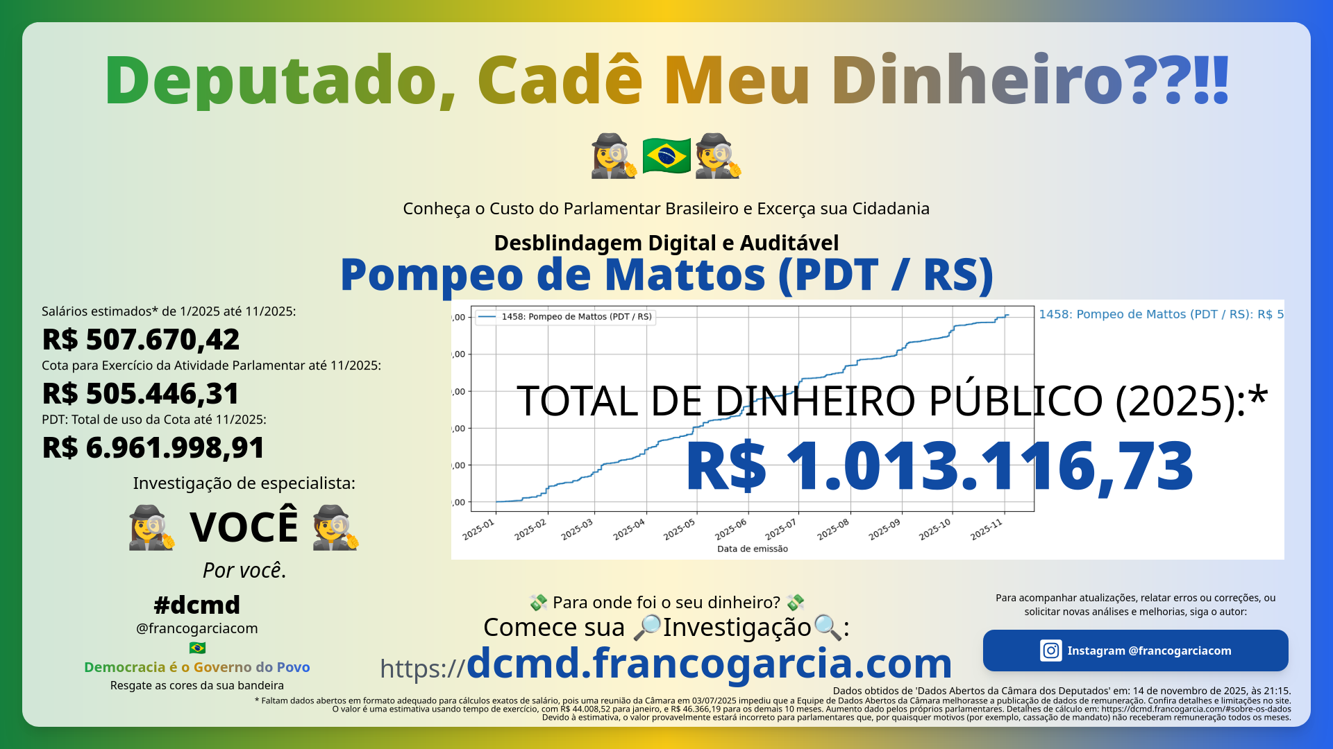 Em 2025, quanto Pompeo de Mattos (PDT/RS) e o PDT usaram do seu dinheiro com a Cota para Exercício da Atividade Parlamentar?
