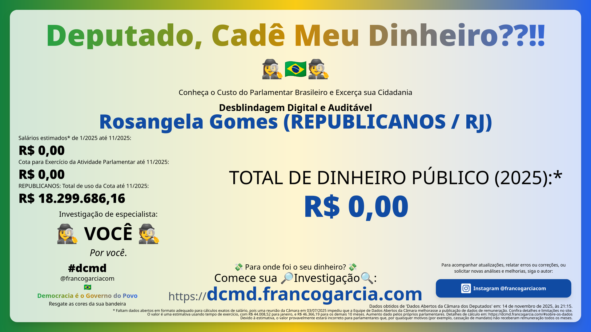 Em 2025, quanto Rosangela Gomes (REPUBLICANOS/RJ) e o REPUBLICANOS usaram do seu dinheiro com a Cota para Exercício da Atividade Parlamentar?